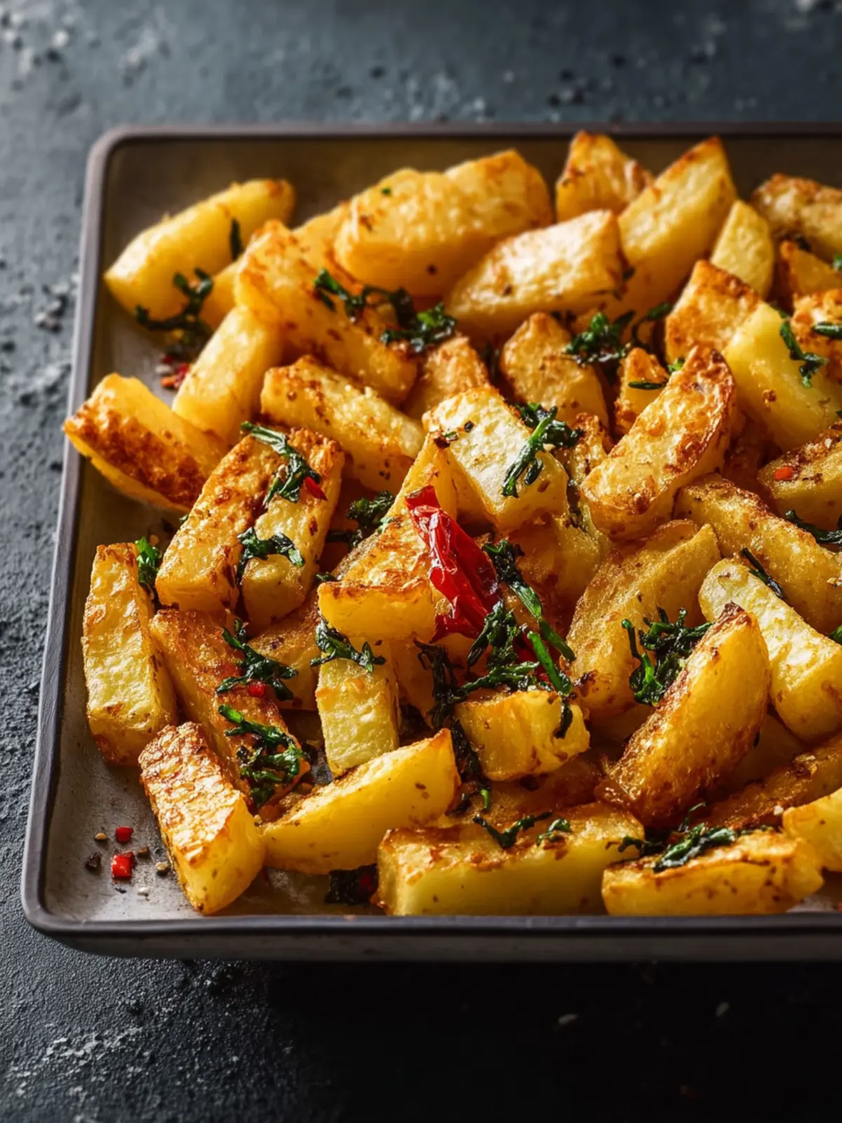 Deliciously crispy garlic potatoes seasoned with fresh herbs and spices.