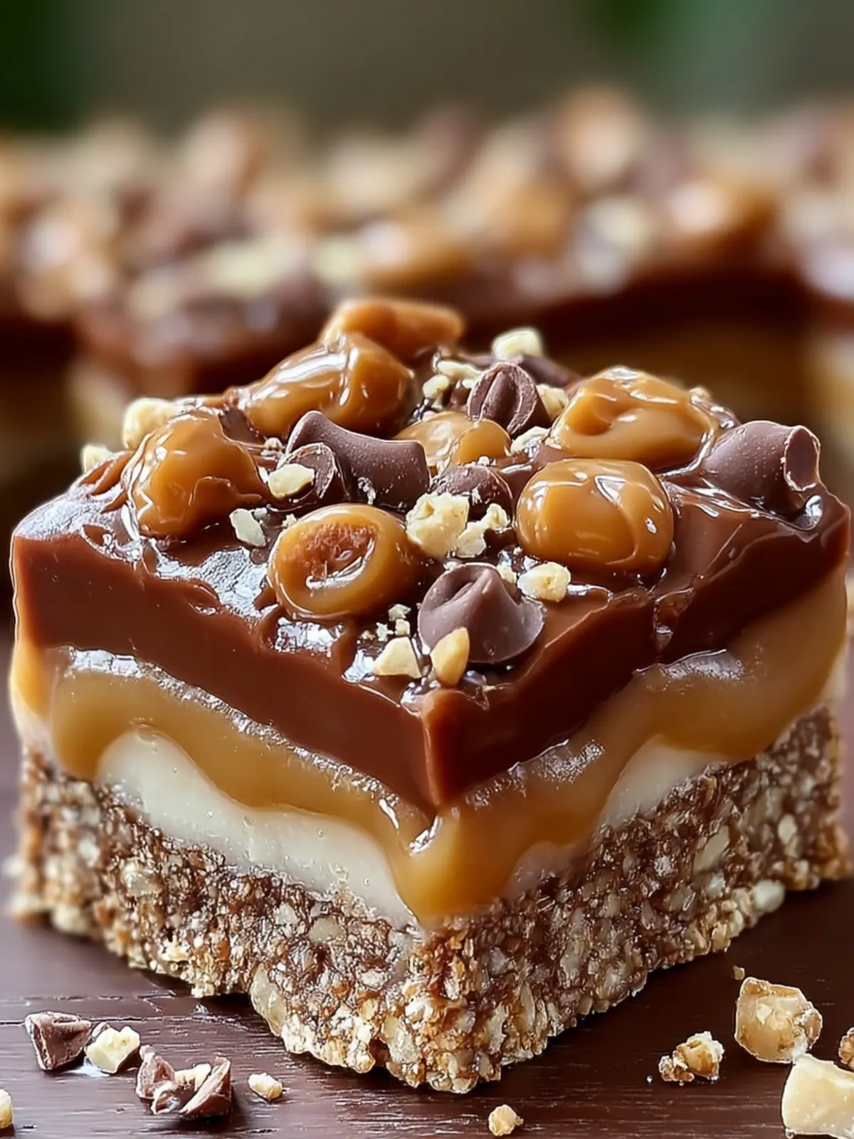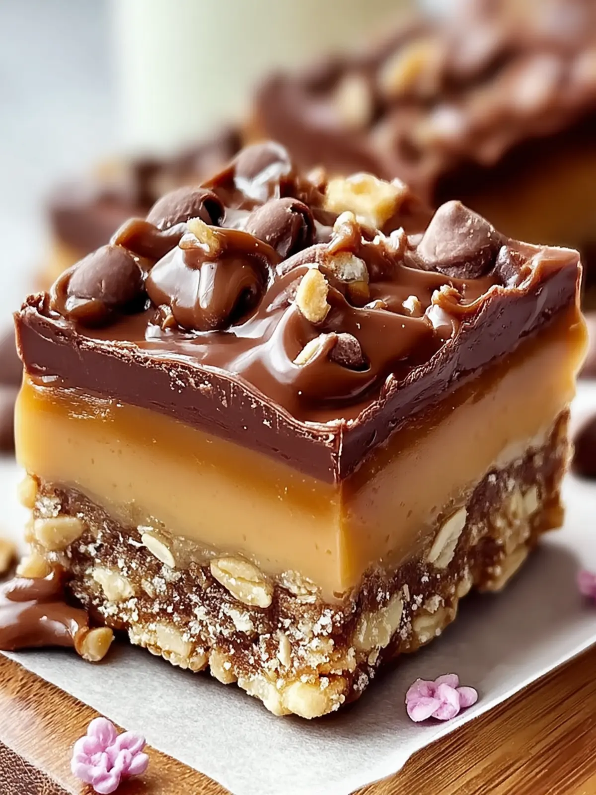 • Caramel Cooling: Allow your caramel to cool slightly before spreading it over the oat layer. This prevents it from melting the chocolate too soon.