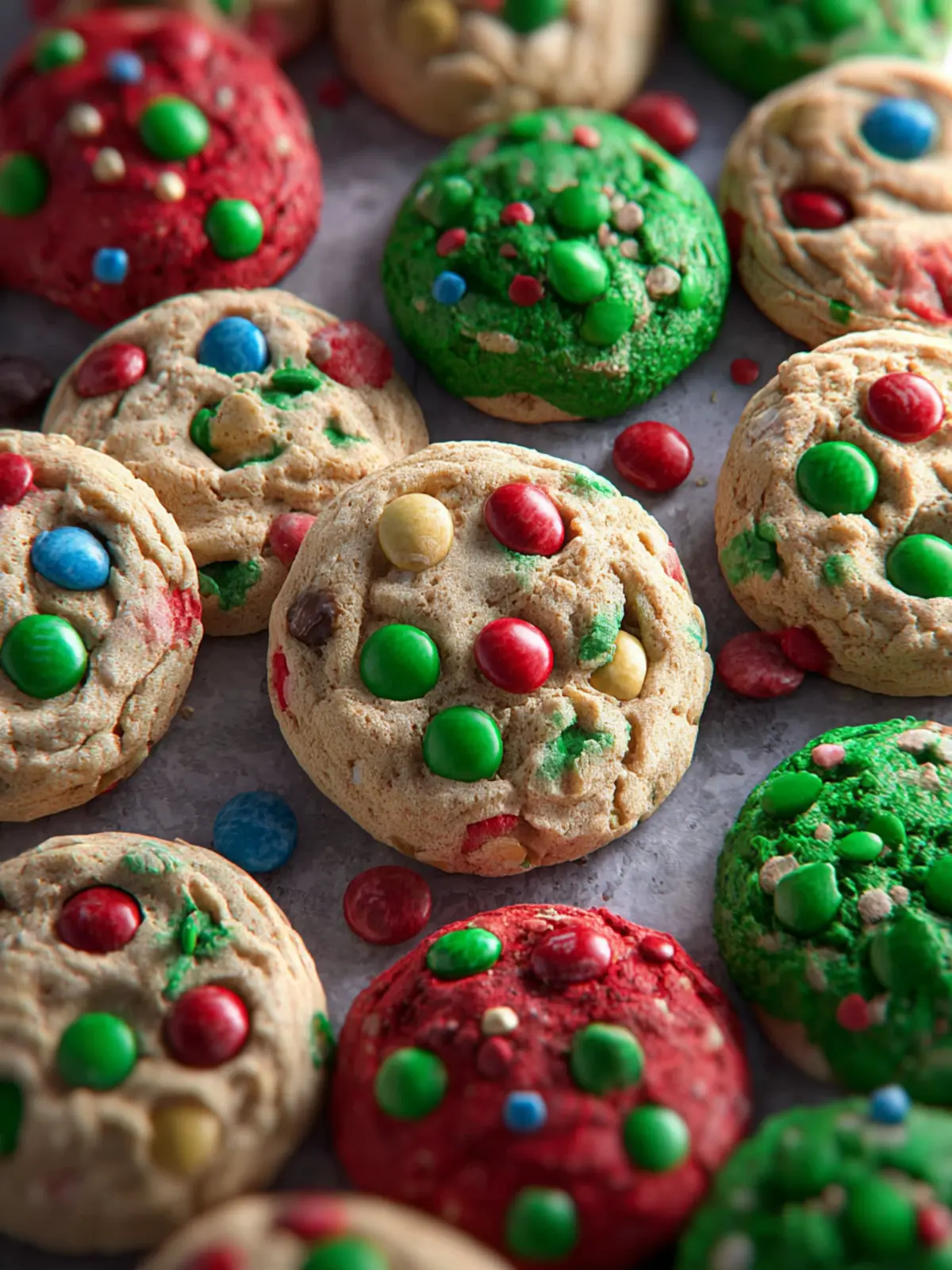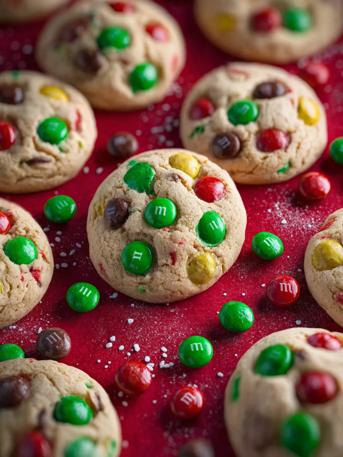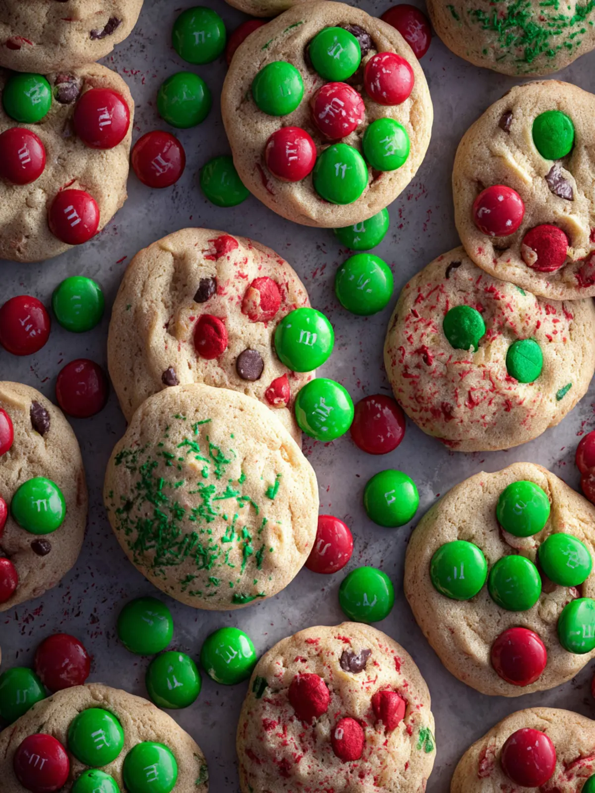 Delicious and festive cookies filled with chocolate M&Ms, perfect for the holiday season.