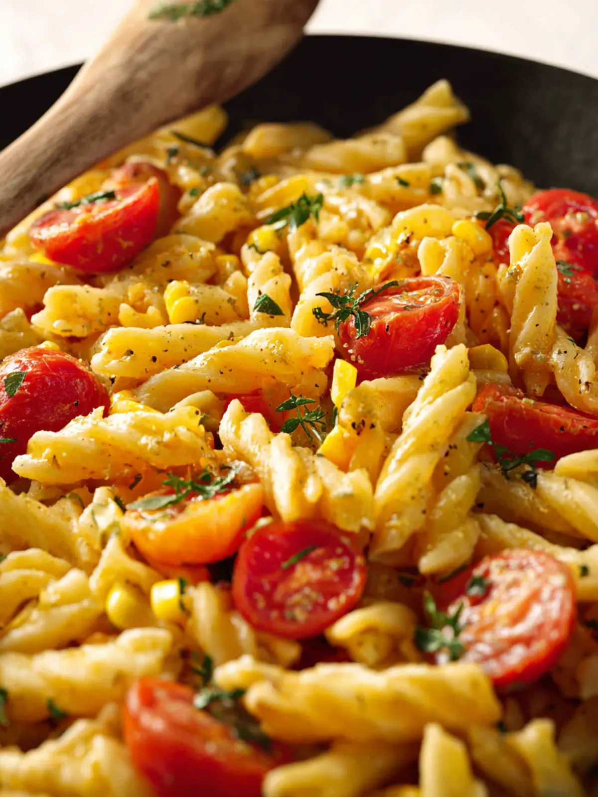 Nutritionally Balanced: With a good mix of carbohydrates, fiber, and vitamins, this pasta dish is nourishing. The corn adds a sweet crunch, while the tomatoes are packed with vitamins C and A—plus, they provide hydration as they’re mostly water.