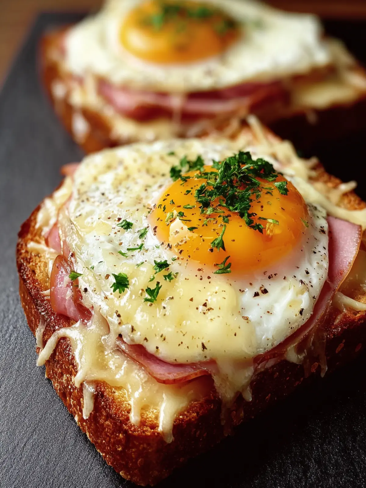 Smoked Ham: Thinly sliced smoked ham brings depth of flavor, ensuring that each bite of the croque madame toast ham cheese is rich and satisfying.
