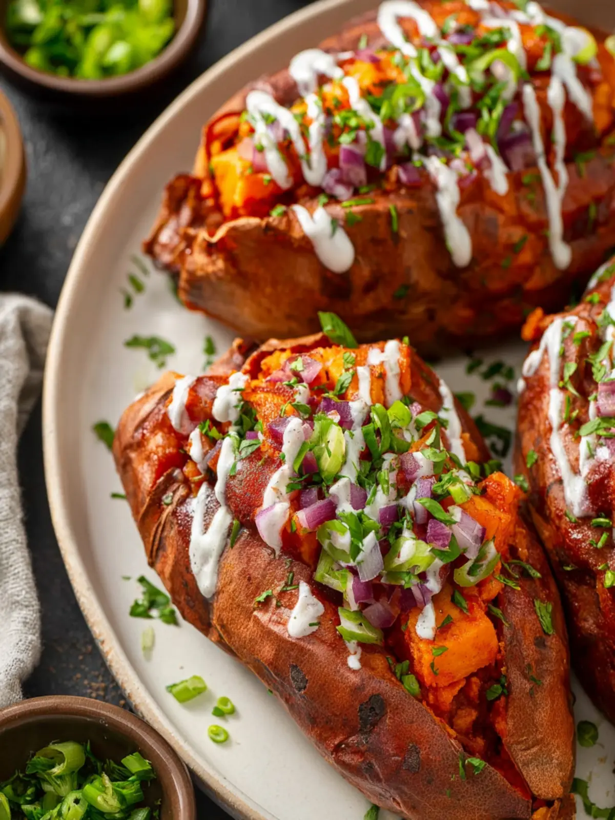 Each serving of these delicious stuffed sweet potatoes contains approximately 350 calories. This makes them a fulfilling option that won’t weigh you down, allowing you to enjoy a nutritious meal any time of the day.