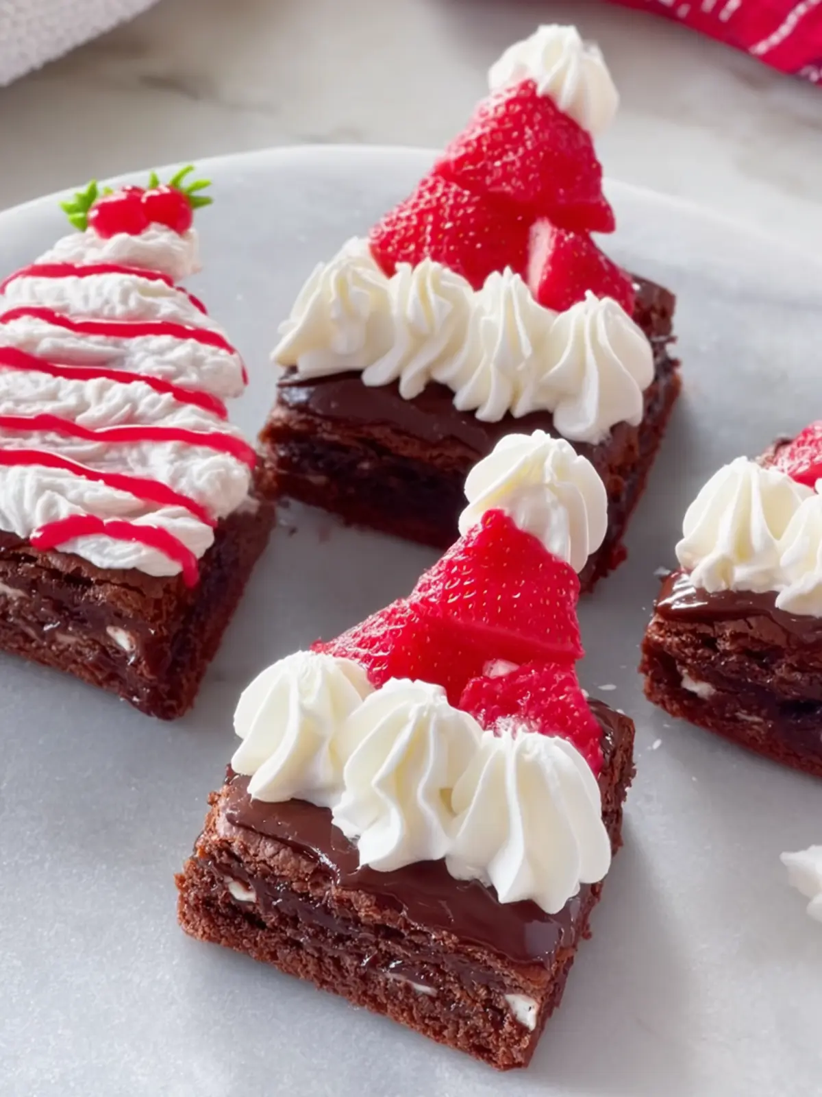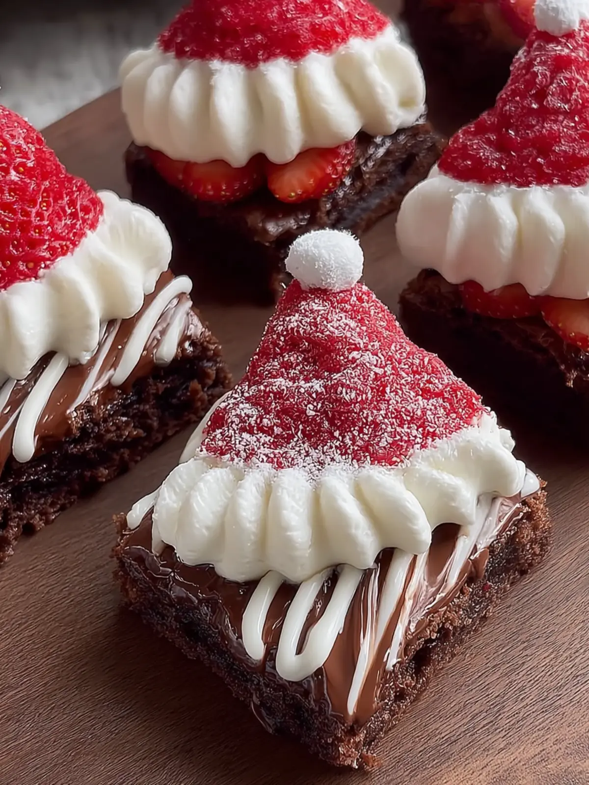 Delicious festive brownies shaped like Santa hats, perfect for holiday gatherings.