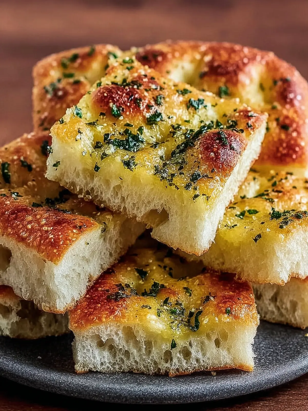 Delicious homemade garlic herb focaccia bread, perfect as a side or for sandwiches.