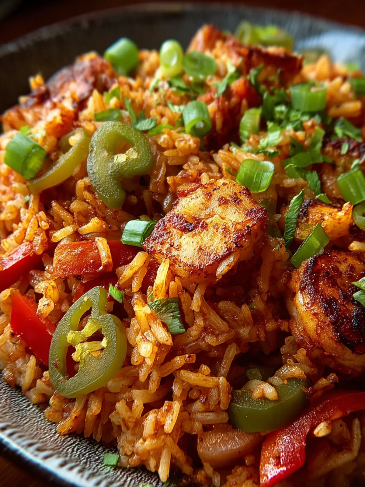 A flavorful Cajun rice dish with mixed vegetables, perfect as a side or a main dish.