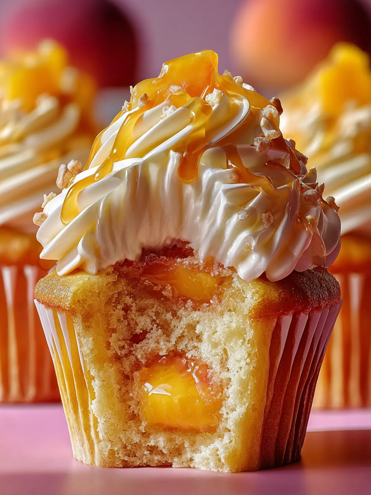 Delicious peach cream cheese cupcakes with a soft and fluffy texture, perfect for dessert or a sweet treat.