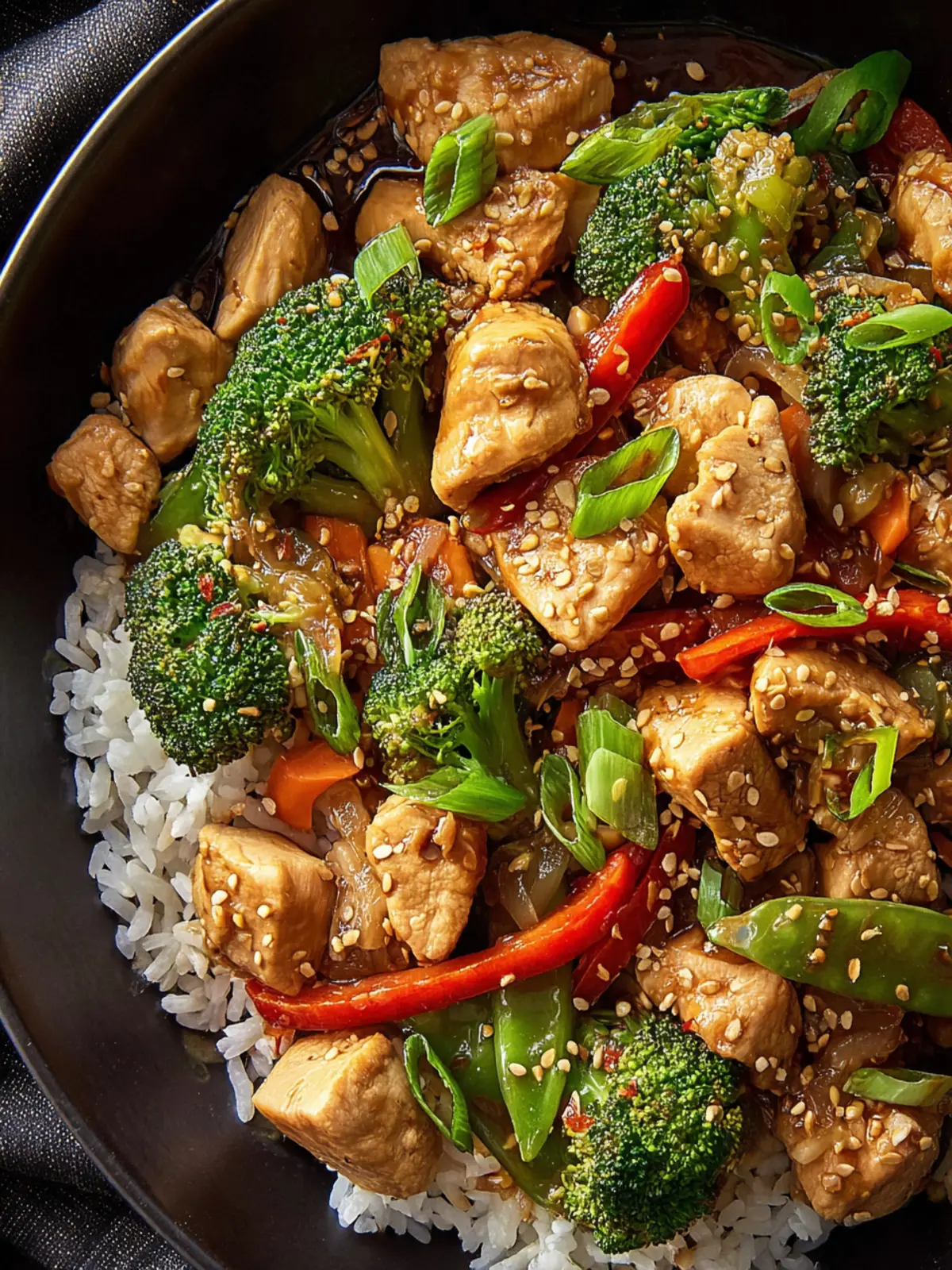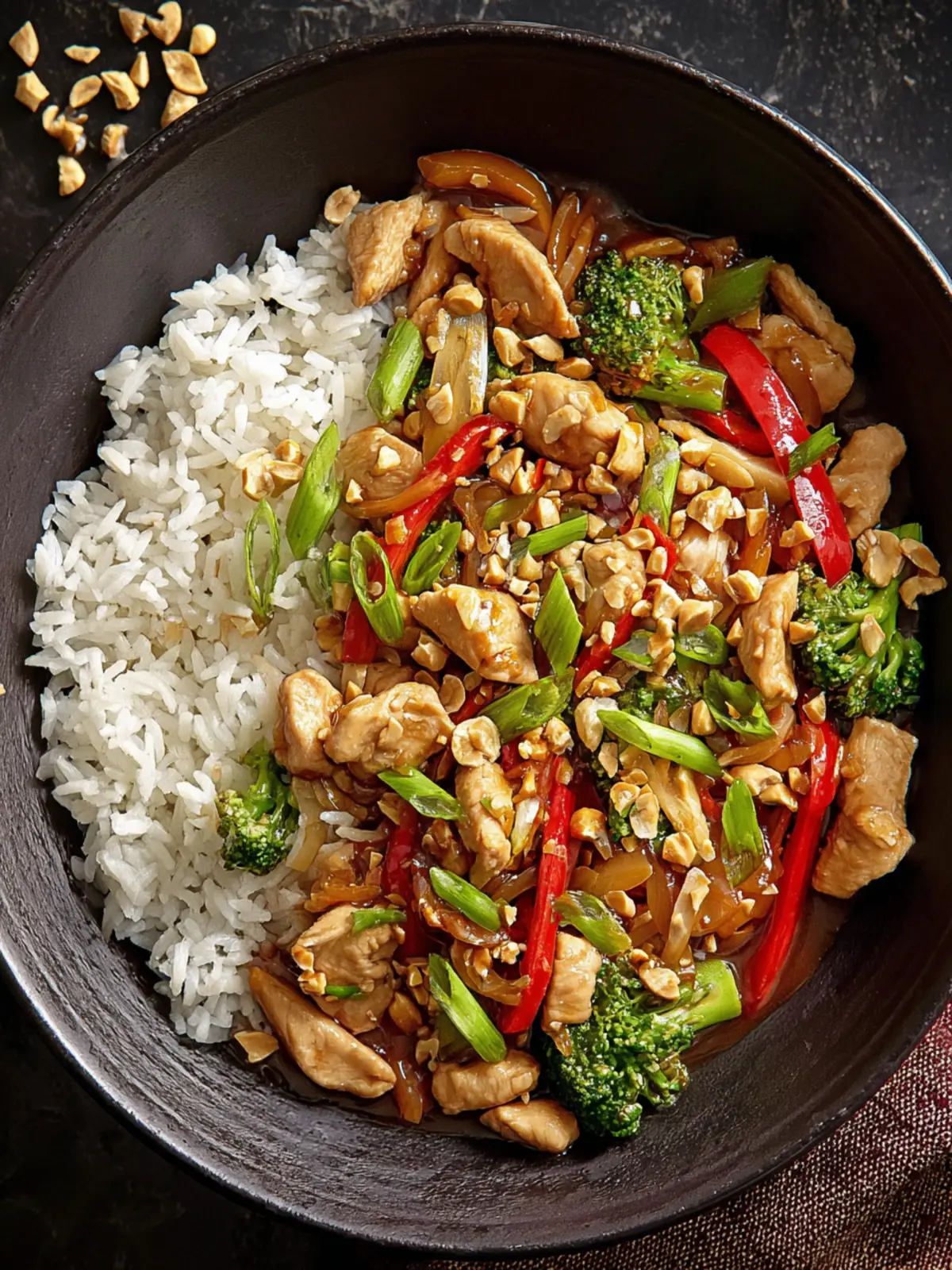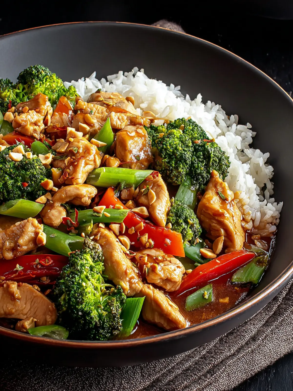 A quick and delicious chicken stir-fry with fresh vegetables and roasted peanuts.