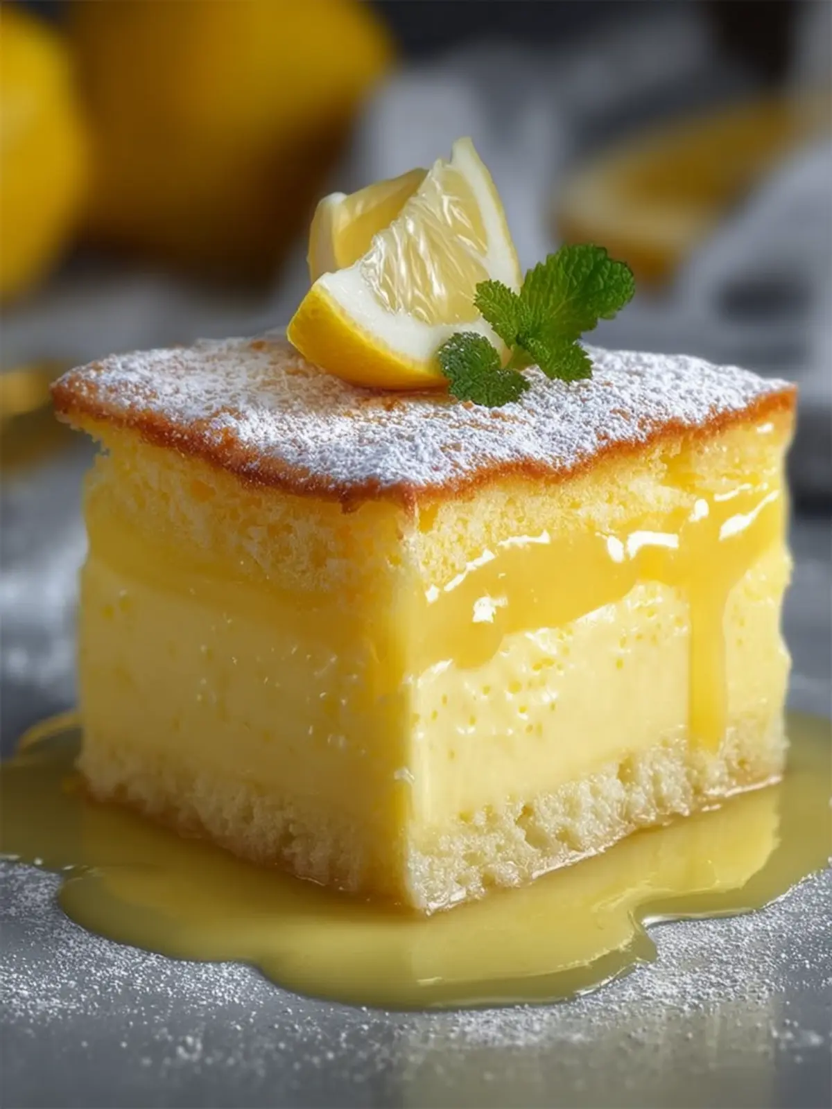Versatile Delight: A lemon custard cake is perfect for both casual gatherings and upscale events. Its elegant presentation and delightful flavor make it easy to serve at any occasion.