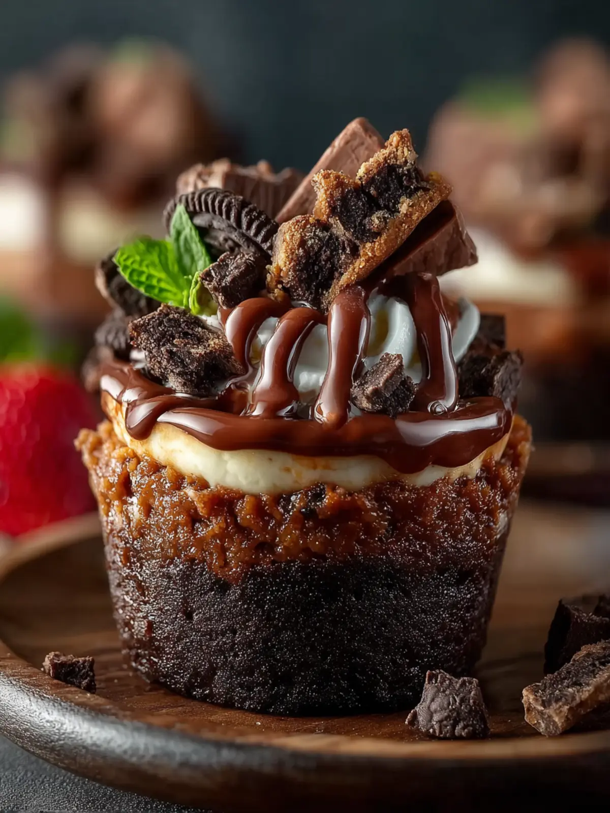 Each bite is a symphony of chocolatey goodness and creamy texture. The contrast between the dense brownie and the light cheesecake filling keeps your taste buds dancing, and the added toppings—like chocolate chips or chopped nuts—elevate these cups even further. You’ll want to savor every last crumb!