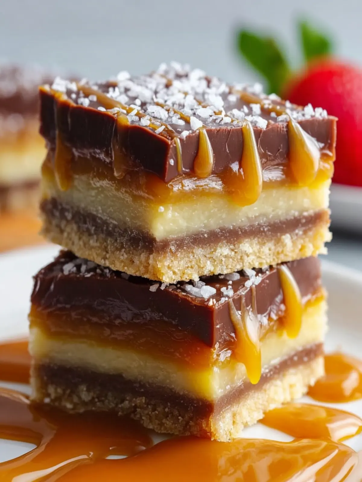 Flaky Sea Salt: Just a sprinkle boosts the flavor balance, making each bite a sublime experience. This subtle touch adds a gourmet finish to your millionaire shortbread caramel chocolate masterpiece.