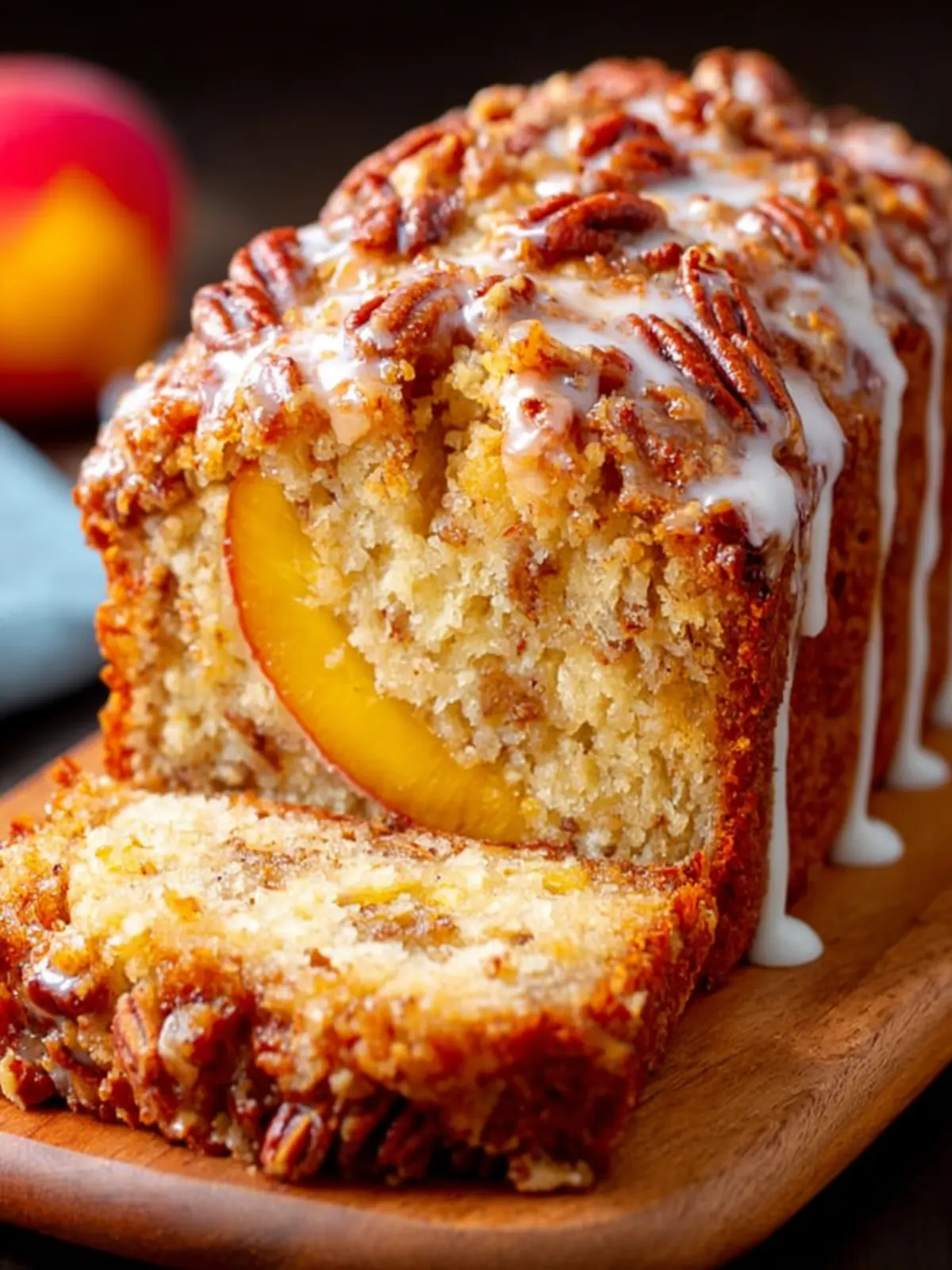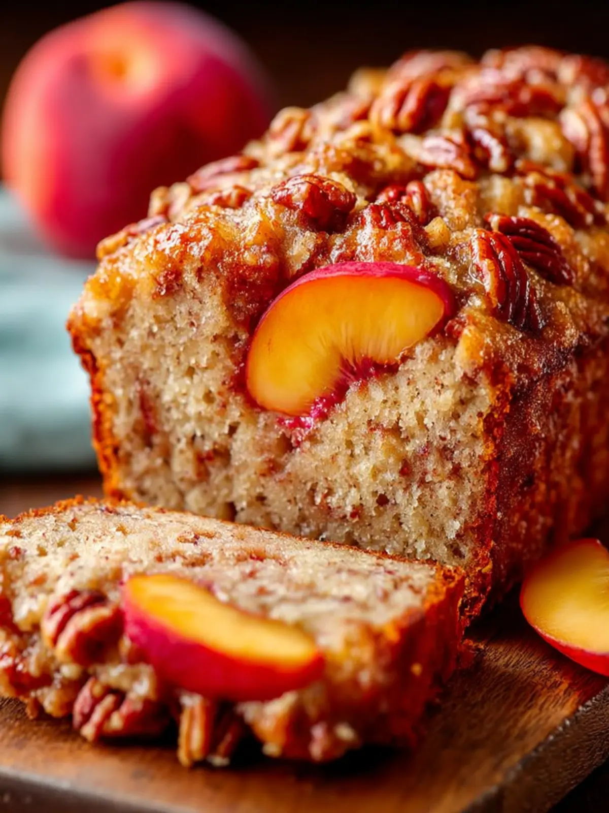 This delicious moist peach pecan bread is a perfect treat for any occasion, filled with fresh peaches and crunchy pecans.