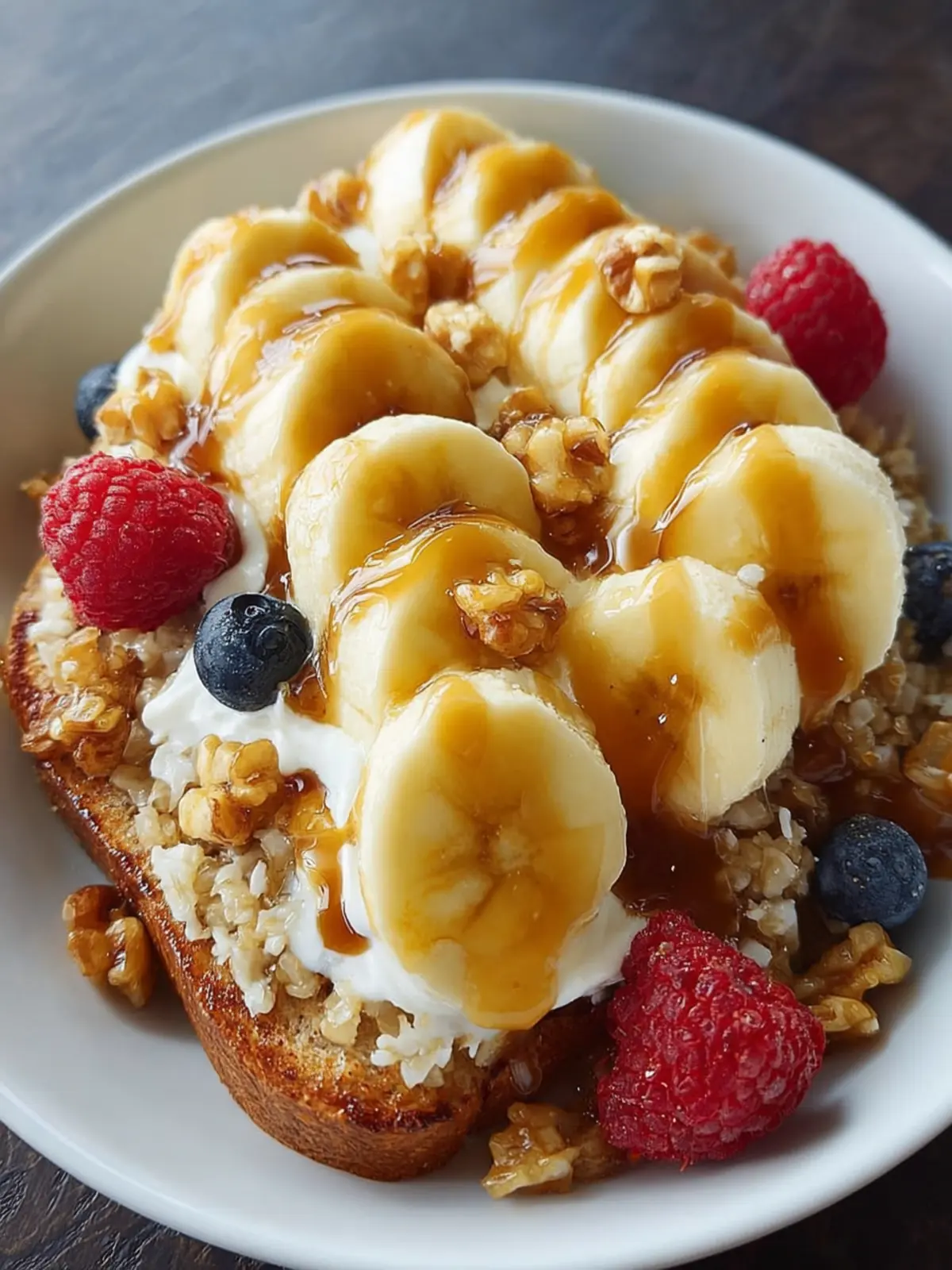 A delicious and healthy oatmeal recipe with banana and walnuts.